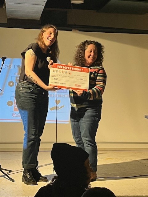 Le projet gagnant de la soirée, « Panier Commun » porté par Annie, a remporté le premier prix, recevant une bourse de 1000$. Ce projet ingénieux vise à créer un réseau de partage et d’entraide pour fournir une alimentation abordable à ceux qui en ont le plus besoin.